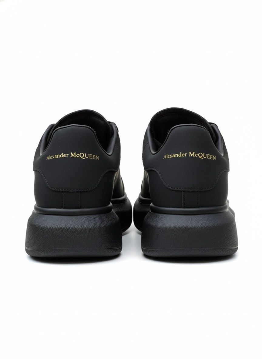 Black smooth calf leather lace-up sneaker with rounded toe and trimmed with black leather heel detail. Large...