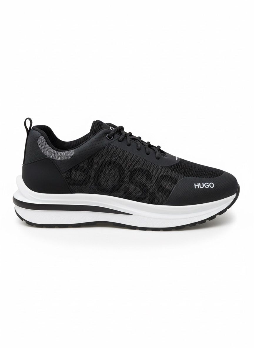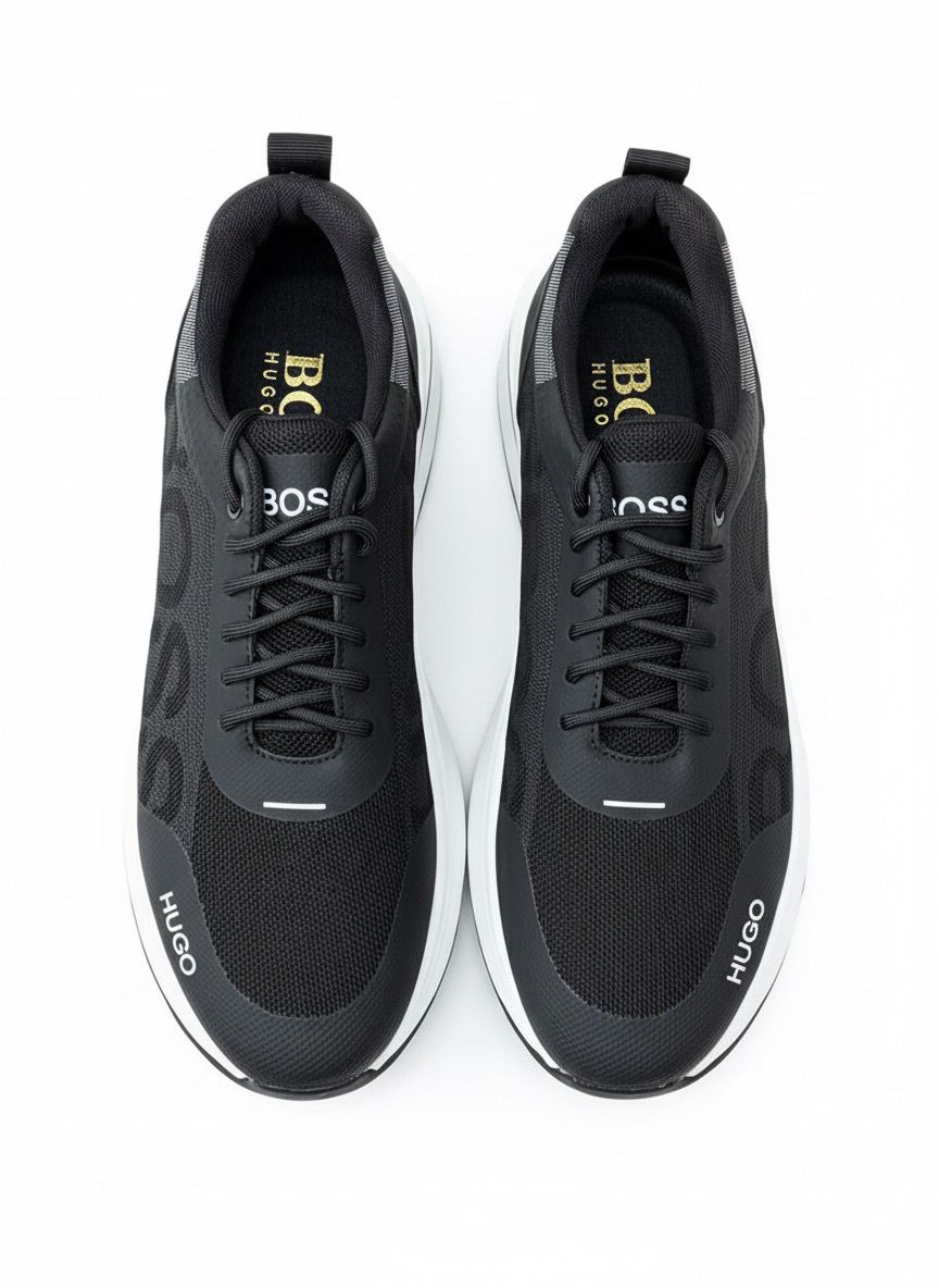 BOSS sneakers with a parallel design and a monogram pattern on the front. They feature a thick, flexible sole.