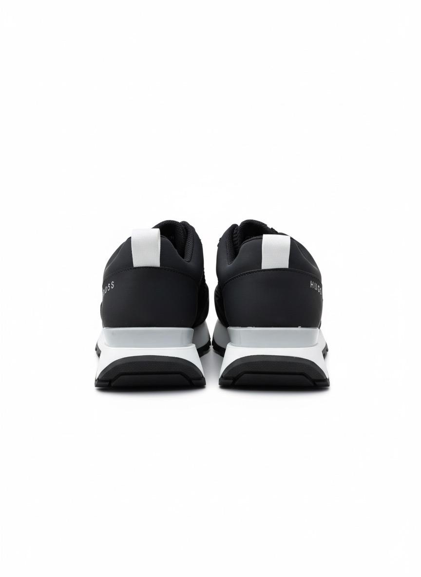 Black front lace-up fastening flat rubber sole pull-tab at the heel branded insole