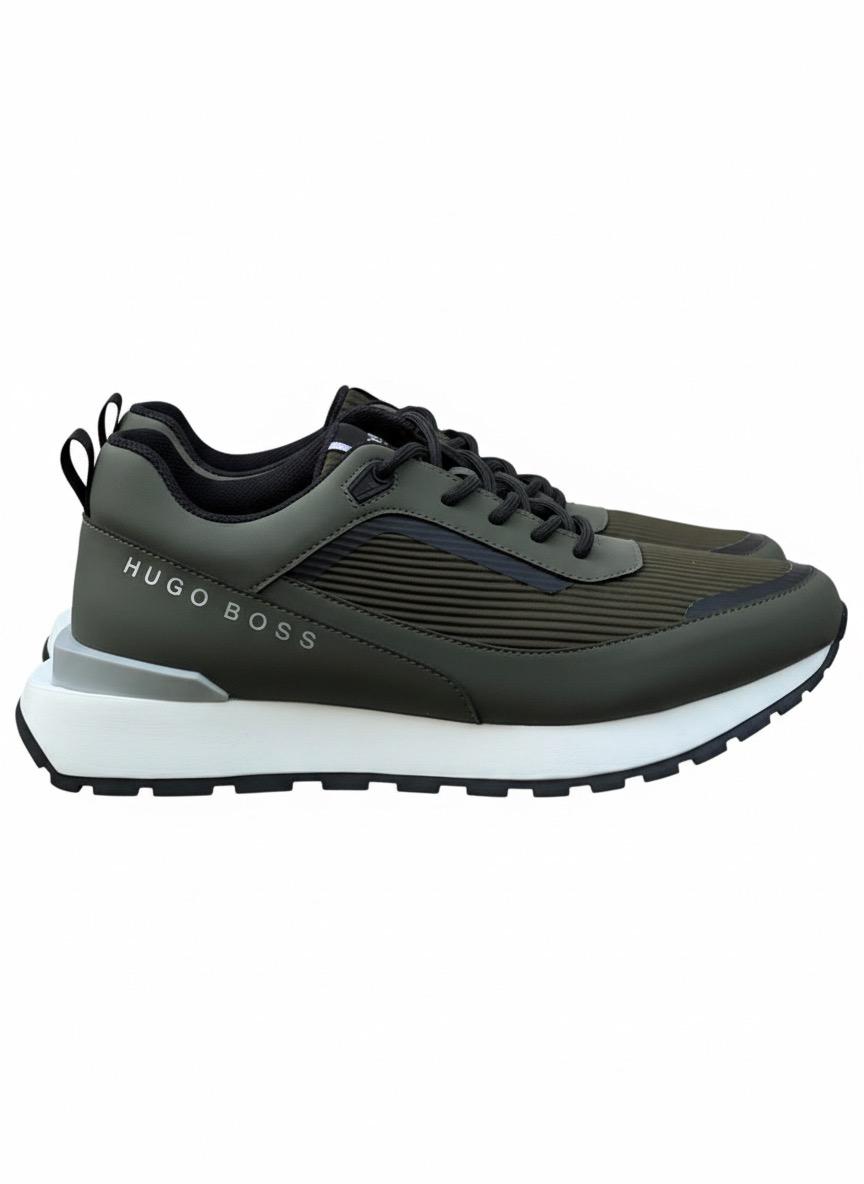 logo-print sneakersBlack front lace-up fastening flat rubber sole pull-tab at the heel branded insole Color: Olive Brand:...